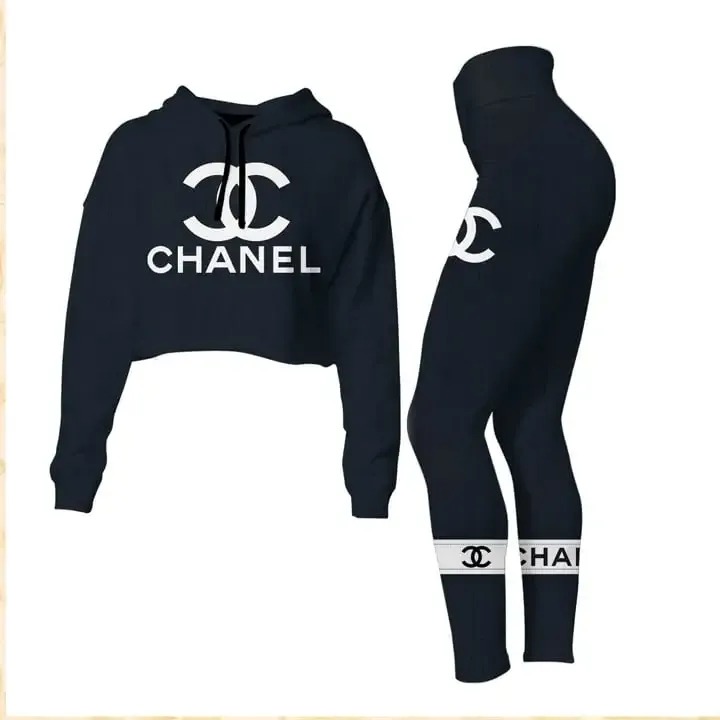 Chanel Croptop Hoodie Leggings For Women Luxury Brand Clothing Clothes Outfit-Max08504