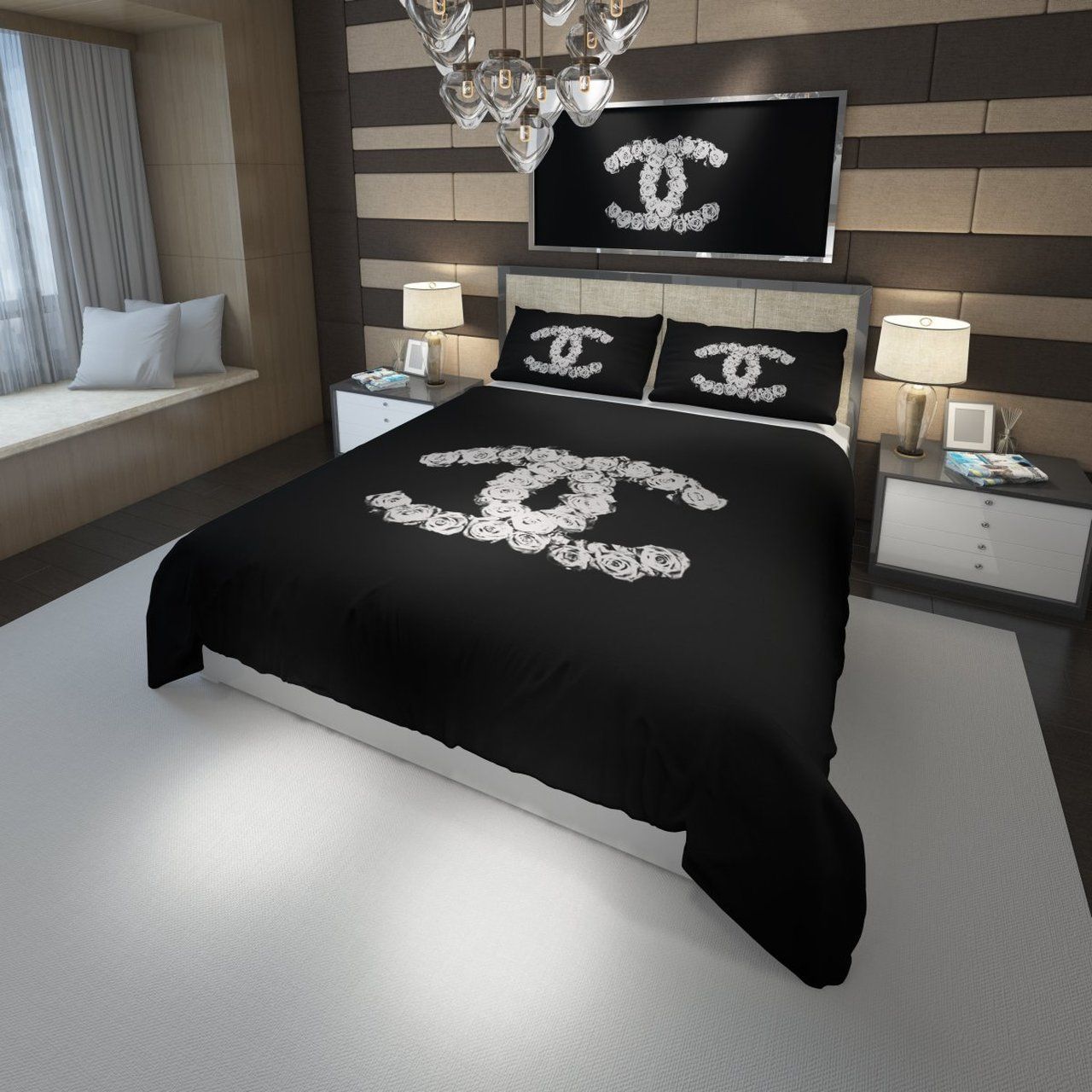 Chanel Logo With White Flowers Bedding Set