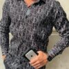 Style:Men’s 3D Print Lapel Neck Long Sleeves Slim Casual Button Shirt Multi-color Tops