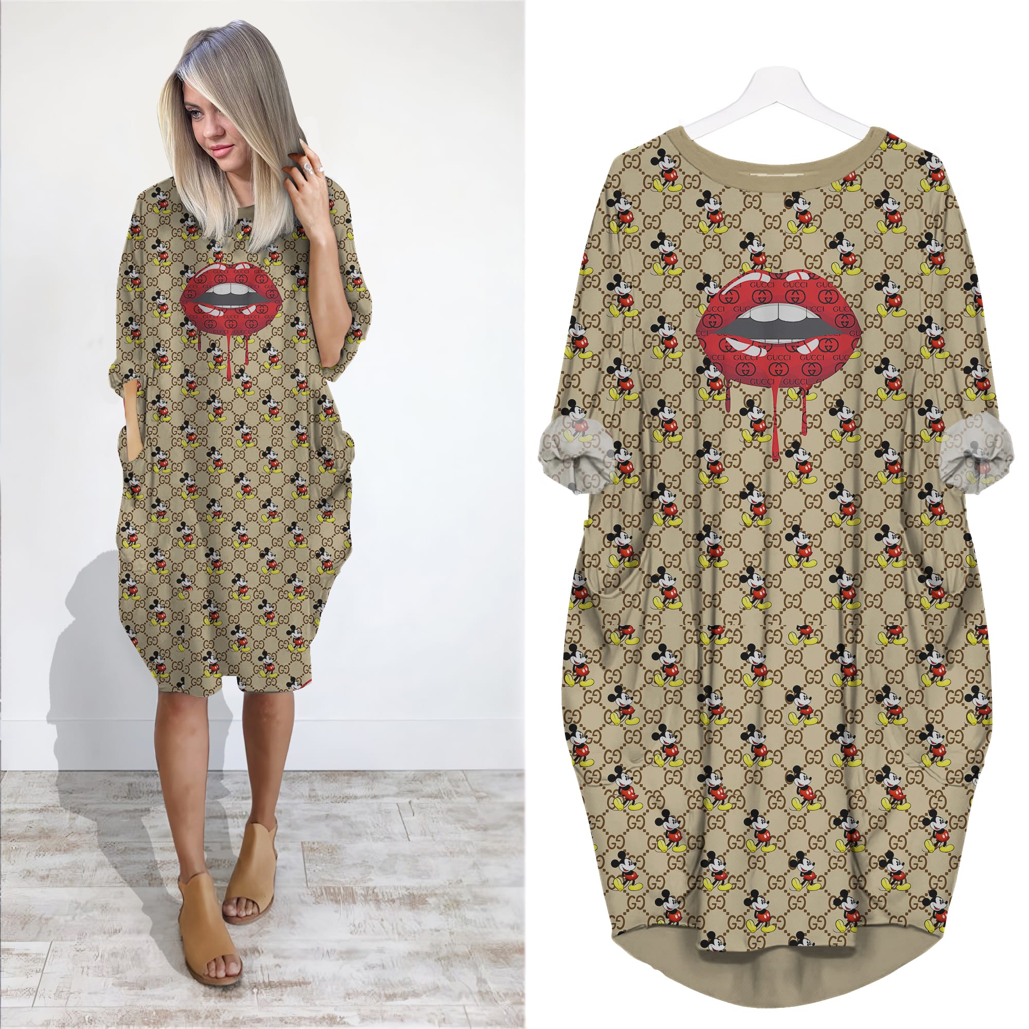 - Features: Roll-up long sleeves, round neckline, casual pullover style, oversized loose fit, midi knee length, with pockets at both sides.