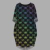 - Features: Roll-up long sleeves, round neckline, casual pullover style, oversized loose fit, midi knee length, with pockets at both sides.