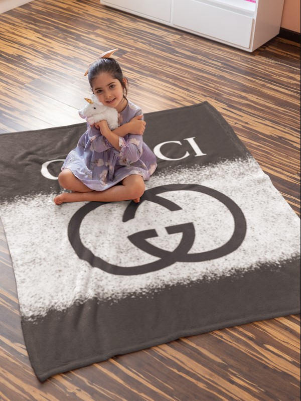 Gucci Black And White Luxury Brand Hot Logo Premium Blanket Fleece Home Decor LVT00164