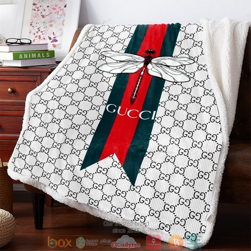 Gucci Dragonfly White Fleece Blanket