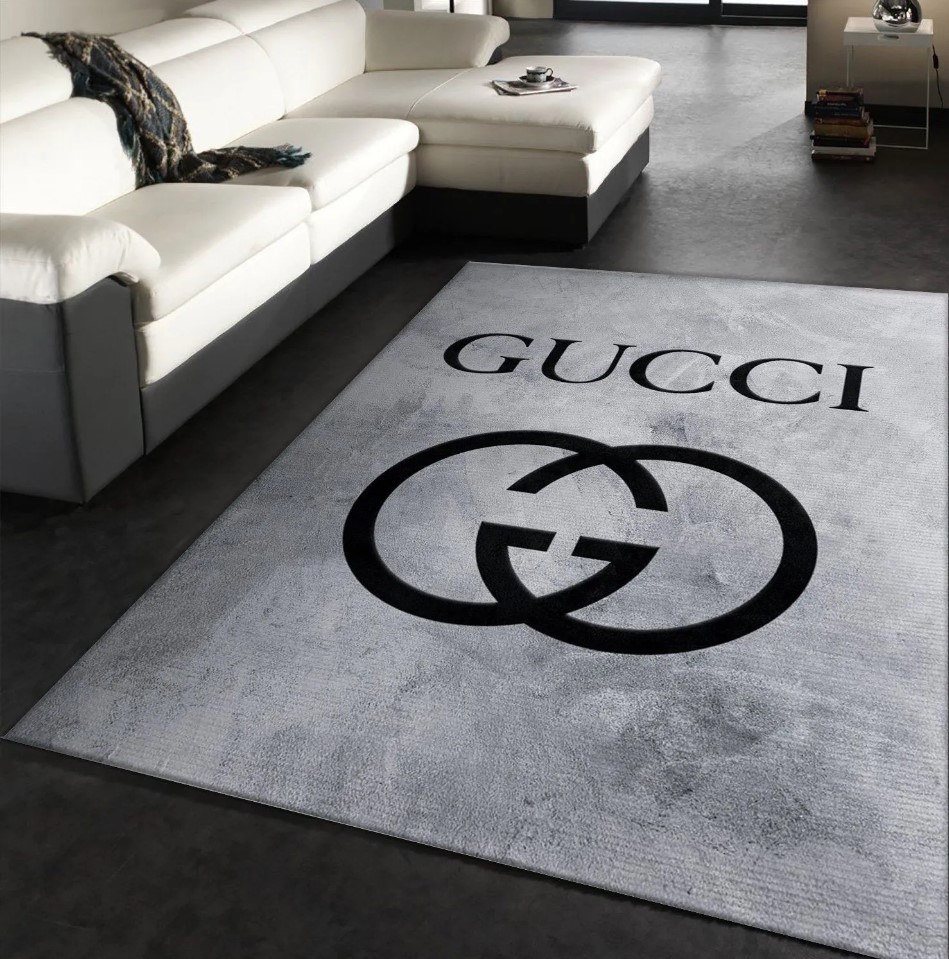 Gucci Grey Luxury Area Rug For Living Room Bedroom Carpet Home Decor Mat LVT00489