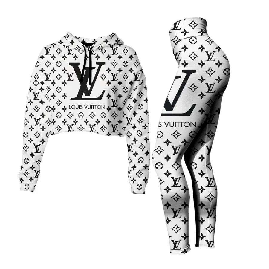 L.Vuitton Croptop Hoodie Leggings For Women Luxury Brand Clothing Clothes Outfit-Max08515