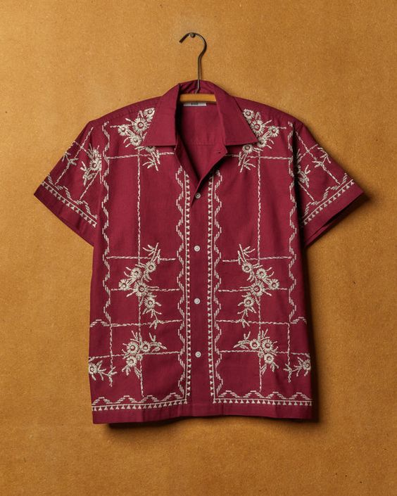 Open collar, circle buttons.