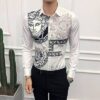 Style:Men’s 3D Print Lapel Neck Long Sleeves Slim Casual Button Shirt Multi-color Tops