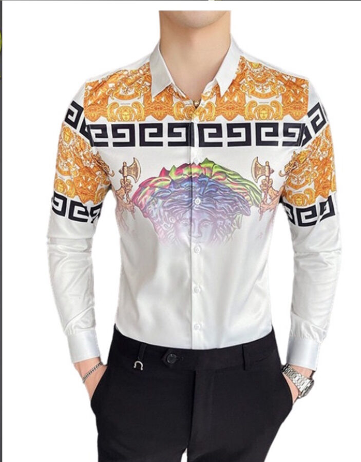 Style:Men’s 3D Print Lapel Neck Long Sleeves Slim Casual Button Shirt Multi-color Tops