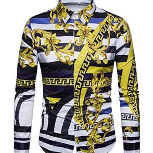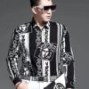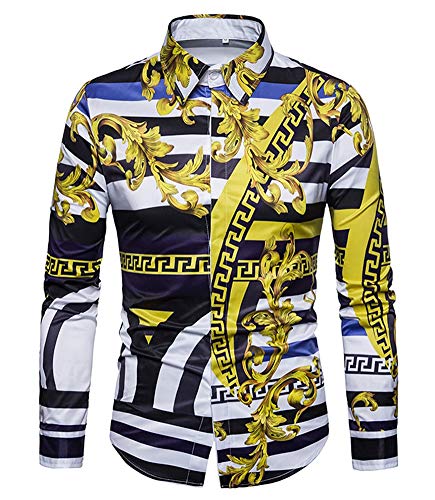 Style:Men’s 3D Print Lapel Neck Long Sleeves Slim Casual Button Shirt Multi-color Tops