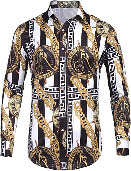 Style:Men’s 3D Print Lapel Neck Long Sleeves Slim Casual Button Shirt Multi-color Tops