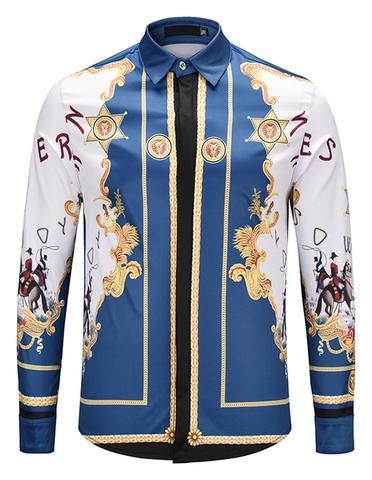 Style:Men’s 3D Print Lapel Neck Long Sleeves Slim Casual Button Shirt Multi-color Tops