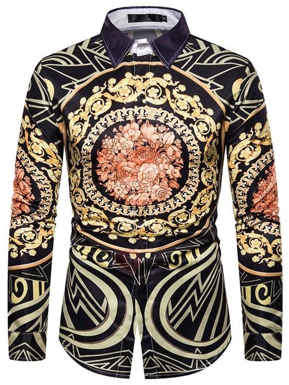 Style:Men’s 3D Print Lapel Neck Long Sleeves Slim Casual Button Shirt Multi-color Tops