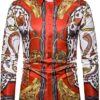 Style:Men’s 3D Print Lapel Neck Long Sleeves Slim Casual Button Shirt Multi-color Tops