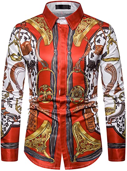 Style:Men’s 3D Print Lapel Neck Long Sleeves Slim Casual Button Shirt Multi-color Tops