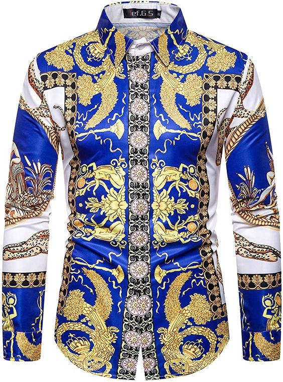 Style:Men’s 3D Print Lapel Neck Long Sleeves Slim Casual Button Shirt Multi-color Tops