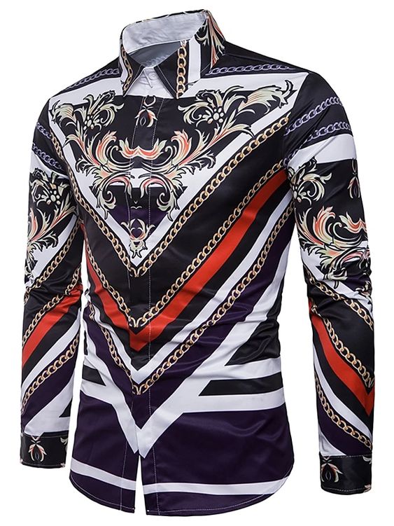 Style:Men’s 3D Print Lapel Neck Long Sleeves Slim Casual Button Shirt Multi-color Tops