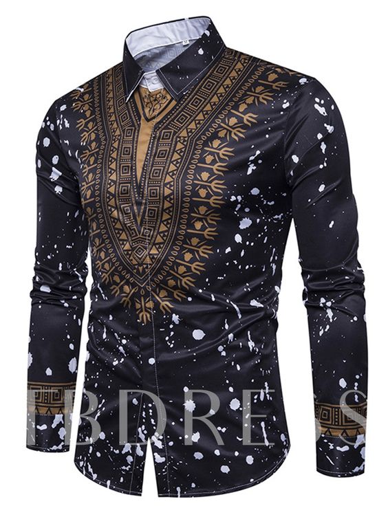 Style:Men’s 3D Print Lapel Neck Long Sleeves Slim Casual Button Shirt Multi-color Tops