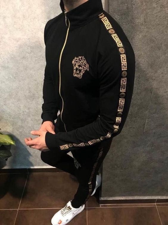 Limited Stand Collar Jacket + Sweatpants Versa.ce Luxury Brand Unisex Hot Gift PEA32006