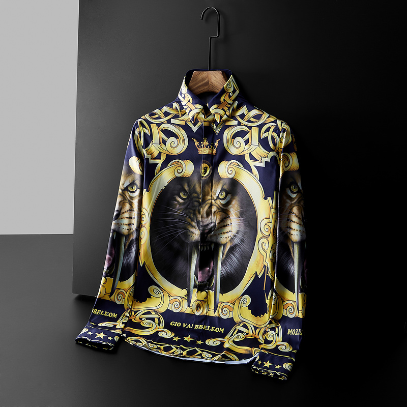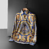 Style:Men’s 3D Print Lapel Neck Long Sleeves Slim Casual Button Shirt Multi-color Tops