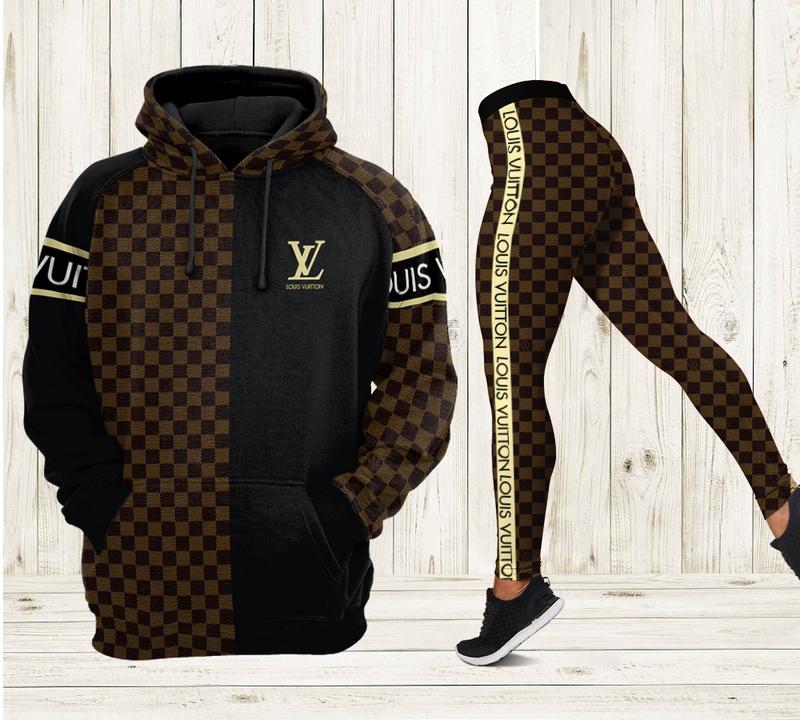 Louis Vuitton Black Brown Hoodie Leggings Luxury Brand LV Clothing Clothes Outfit For Women HT