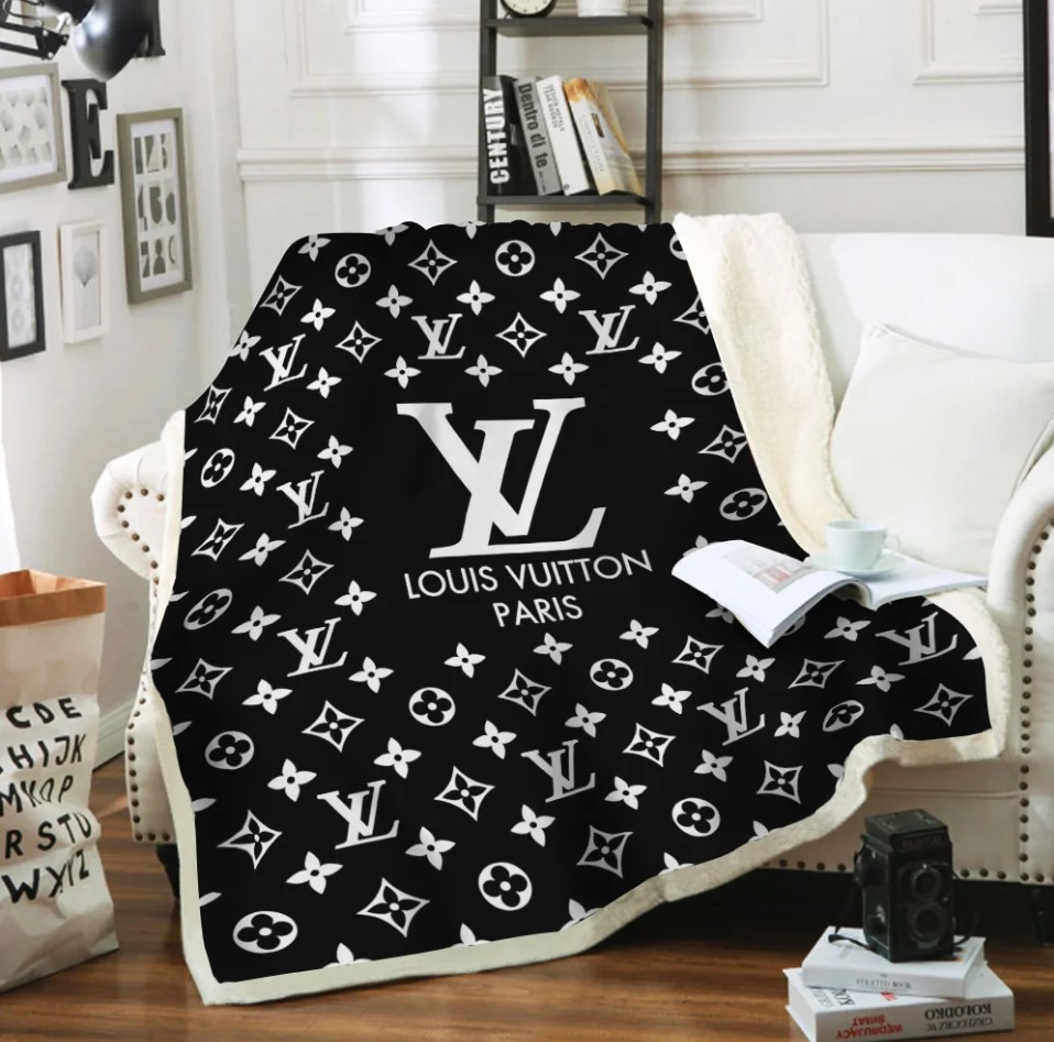 Louis Vuitton Black Fashion Luxury Brand Premium Blanket Fleece Home Decor LVT00182