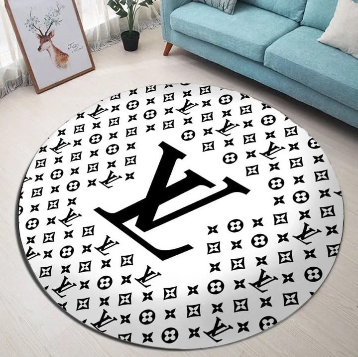 Louis Vuitton Black Logo White Luxury Brand Fashion Round Rug Carpet Home Decor Special Gift LVT00411