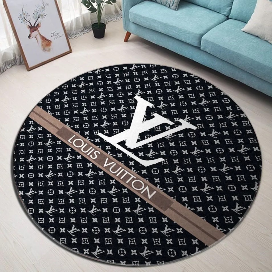 Louis Vuitton Black Luxury Brand Fashion Round Rug Carpet Home Decor Special Gift LVT00447