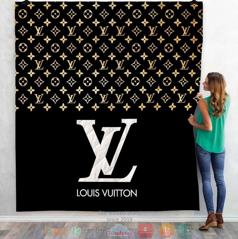 LOUIS VUITTON YELLOW PATTERN BLACK QUILT BLANKET