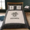 Orange And Dark Blue Hermes Bedding Set