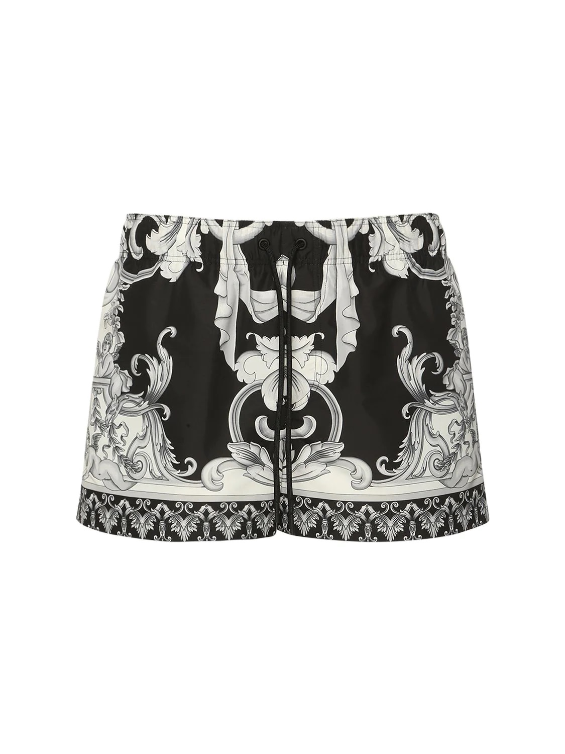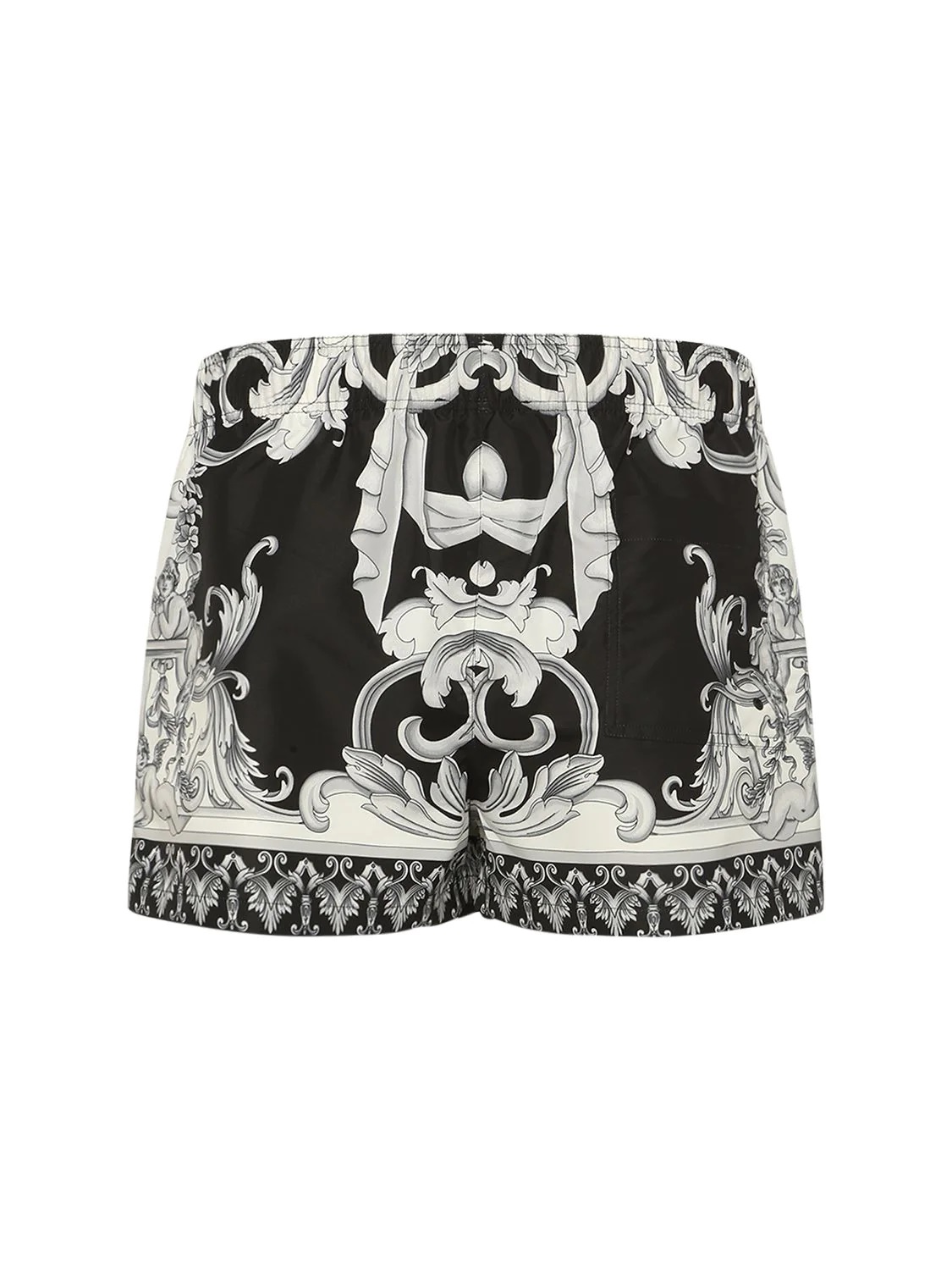You’ll catch us wearing luxury shorts on our next trip to Hawaii, Miami or Coronado… We’ll be the ones catching some dangerous waves. Kidding, we’ll be the ones playing football at the beach. Featuring an elasticated waistband with a drawstring fastening, a back zip pocket and a luxury print all over.