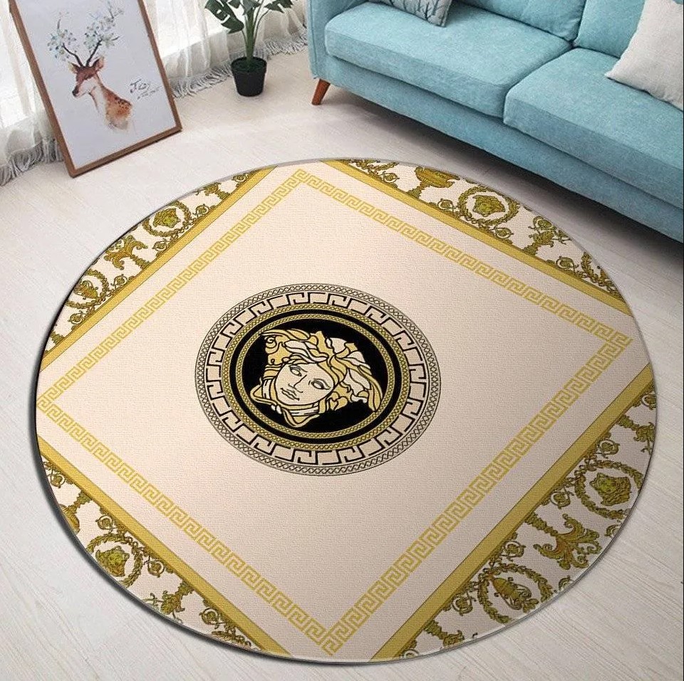 Versace Medusa Pattern Yellow Luxury Brand Fashion Round Rug Carpet Home Decor LVT00416